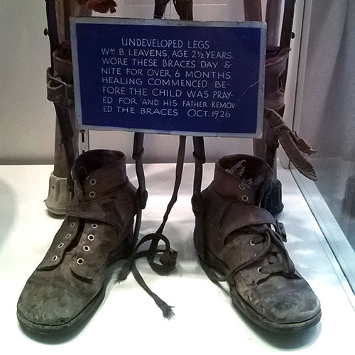 He is walking—he is running. His little limbs seem straight and strong. The mother and father are clasped in each other’s arms. They are going to their own seats now, back in the audience. The braces are forgotten, left to join the pile of crutches and canes and other contraptions that have been left behind.